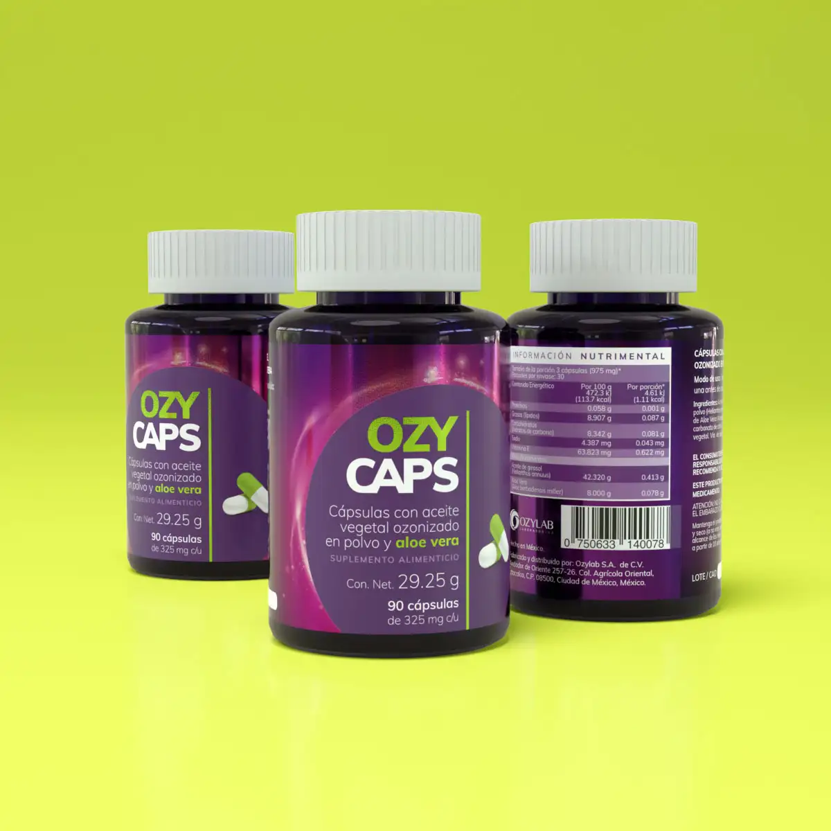 Ozycaps, las cápsulas de aceite ozonizado en polvo, son un producto 100% natural con grandes beneficios para la salud. INNOVACIÓN TECNOLÓGICA CON ACEITE VEGETAL OZONIZADO EN POLVO Y ALOE VERA. Gracias a los beneficios del aceite ozonizado en polvo y el aloe vera Ozycaps actúa como coadyuvante en el tratamiento de gastritis y colitis, ayudando a desaparecer los síntomas como inflamación o acidez, además de equilibrar la microbiota intestinal y mejorar la digestión. Gracias al poder bactericida del ozono es posible eliminar bacterias, hongos y protozoos, generar una respuesta antioxidante y promover la regeneración celular. MODO DE USO - DIA 1 AL 3: 1 CAPSULA POR LA MAÑANA - DIA 4 AL 6: 1 CAPSULA POR LA MAÑANA Y 1 POR LA NOCHE - DIA 7 +: 3 VECES AL DIA ANTES DE CADA COMIDA